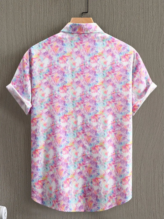Men's Tie-Dye Button Up Short Sleeve Shirt