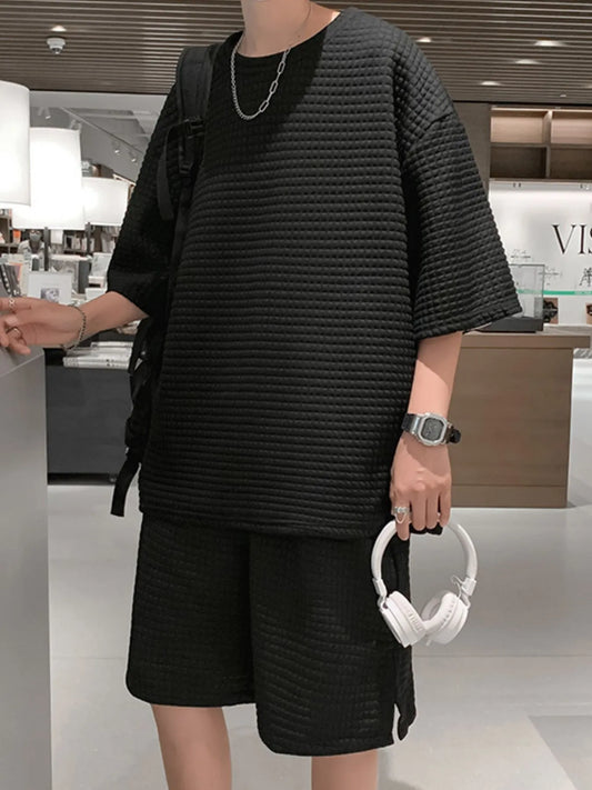 Men's Textured Short Sleeve T-Shirt and Shorts Set
