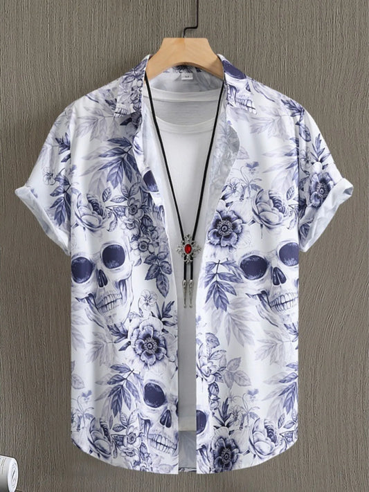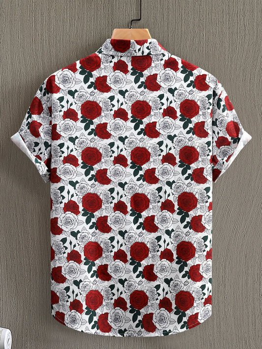 Men's Rose Print Short Sleeve Button-Up Shirt