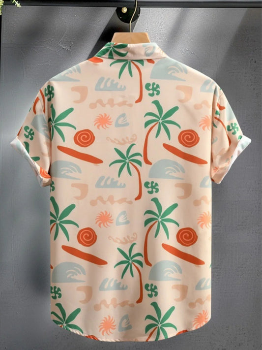 Men's Printed Button Up Short Sleeve Shirt