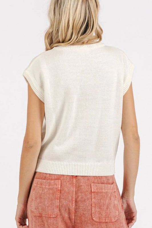 Mittoshop Contrast Letter Round Neck Cap Sleeve Knit Top