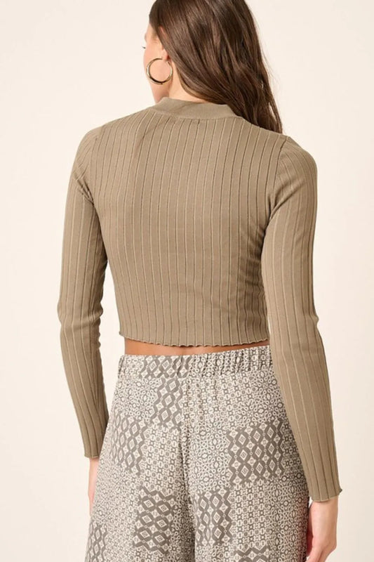 Mittoshop Mock Neck Rib Knit Long Sleeve Crop Top