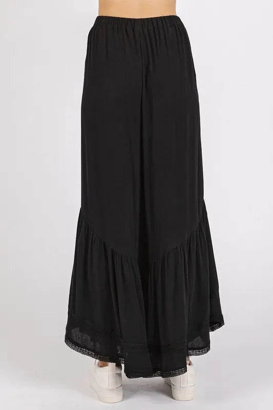 Mittoshop Lace Ruffle Asymmetric Hem Wide Leg Pants