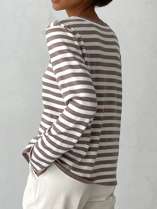 Striped Round Neck Long Sleeve Sweater