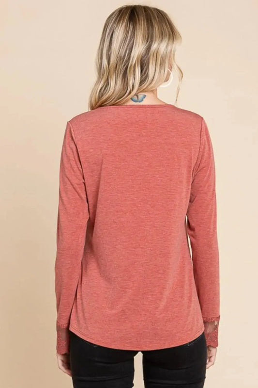 Super Lady Full Size Lace Detail Round Neck T-Shirt