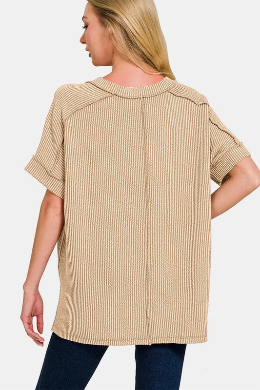 Zenana Corded Rib Short Sleeve High-Low T-Shirt