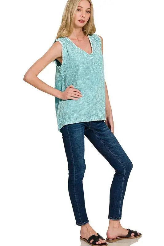 Zenana Double Gauze Raw Edge V-Neck Tank
