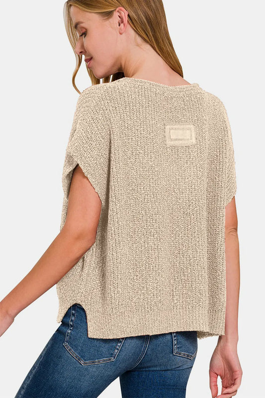 Zenana Short Sleeve Side Slit Sweater