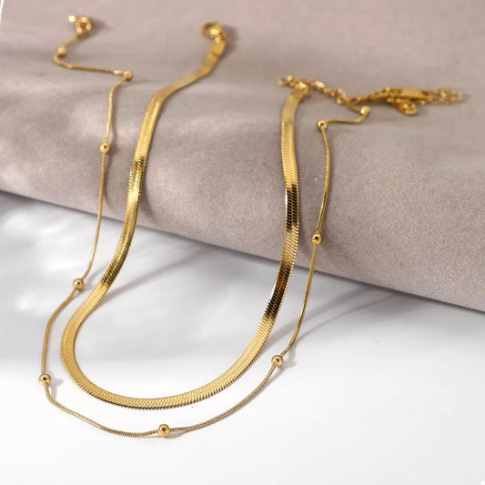 18K Gold-Plated Stainless Steel Double-Layered Necklace