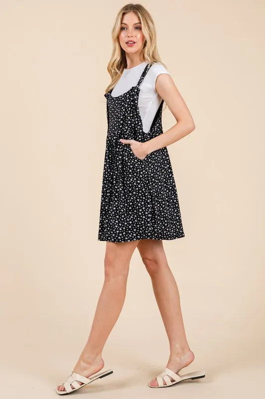 BOMBOM Floral Round Neck Short Tee Dress with Pockets