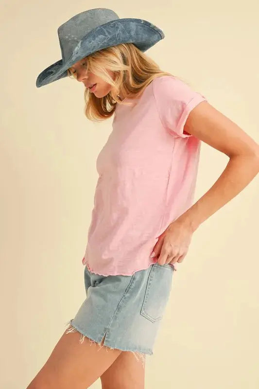 Aemi + Co Lettuce Edge Round Neck Short Sleeve T-Shirt