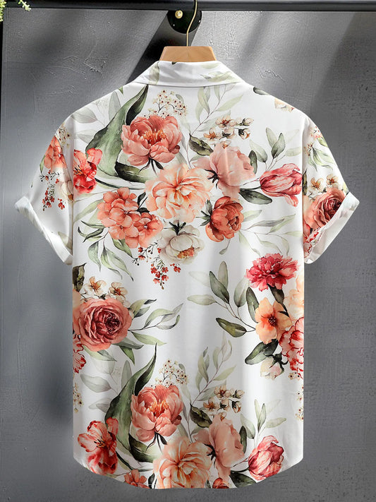 Men's Floral Button Up Short Sleeve Shirt