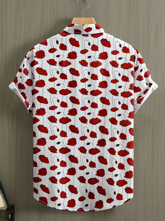 Men's Floral Print Short Sleeve Button-Up Shirt