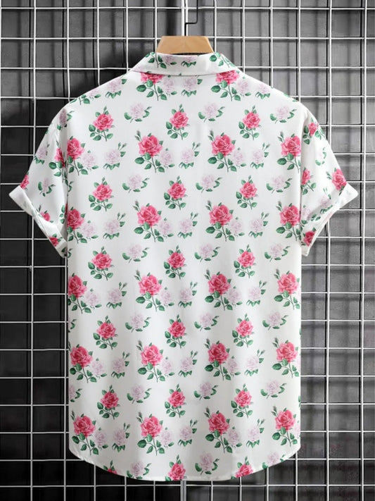 Men's Floral Print Button Up Short Sleeve Shirt