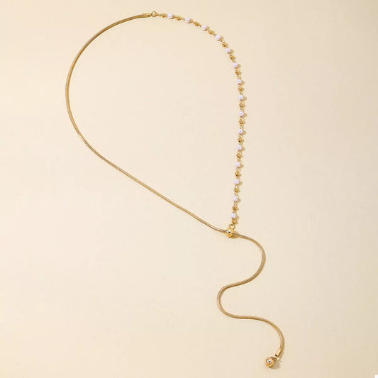 18K Gold-Plated Chain Y-Drop Necklace with Synthetic Pearl Accent