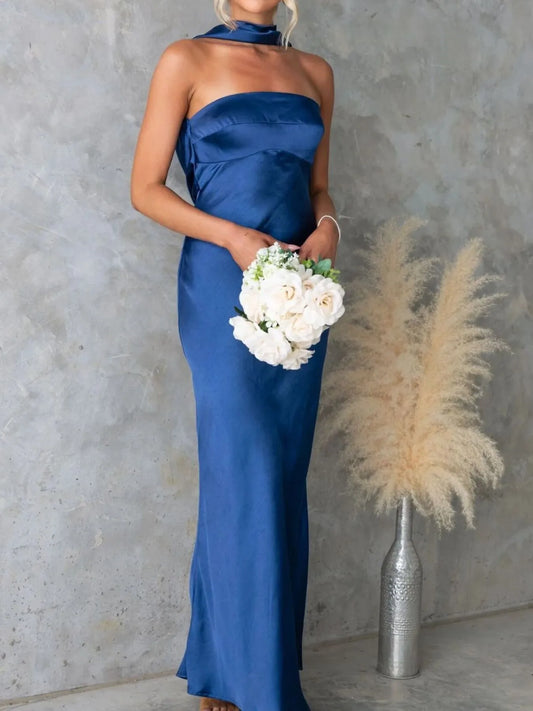 Ruched Single Shoulder Sleeveless Maxi Dress