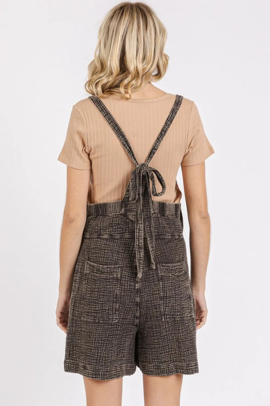 Zenana Acid Crinkle Washed Spaghetti Strap Romper