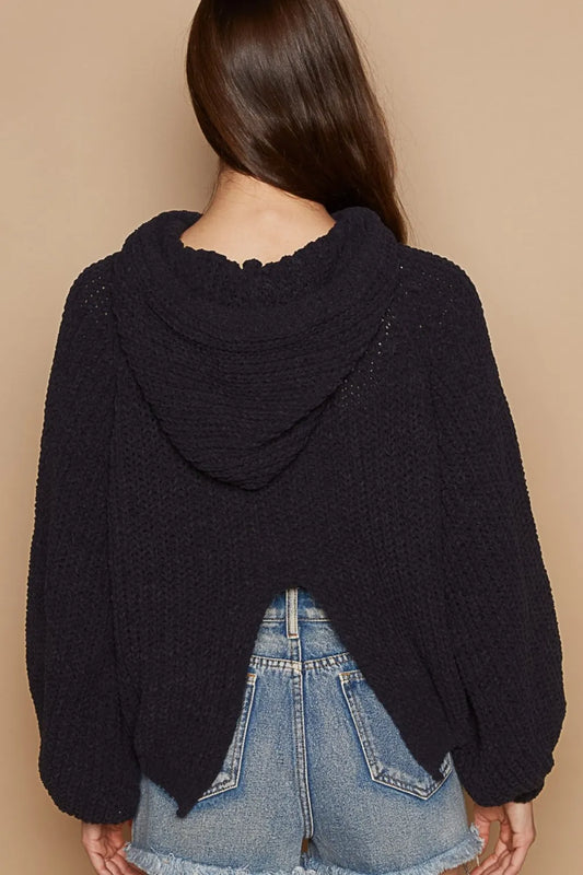 POL Back Open Slit Balloon Sleeve Crop Hooded Sweater