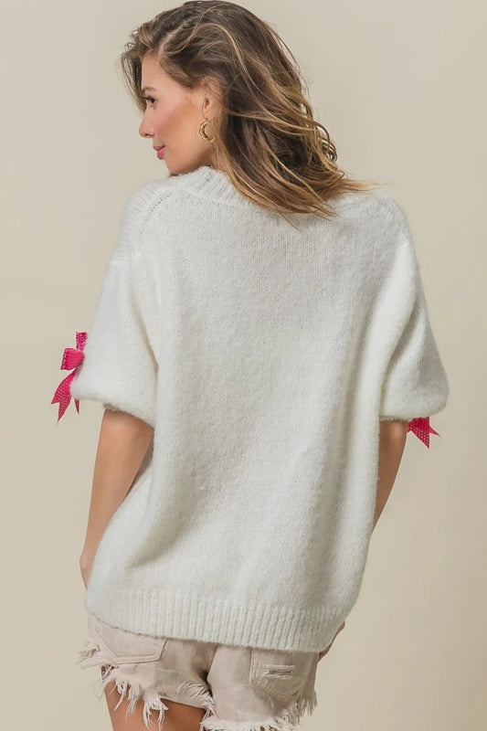 BiBi Sequin Bow Puff Sleeve Sweater