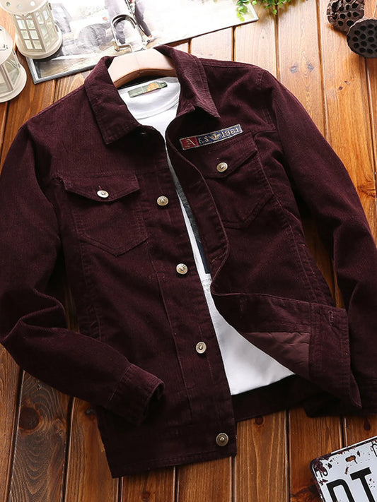 Men's Full Size Button Up Lapel Collar Corduroy Blazer Plus Size