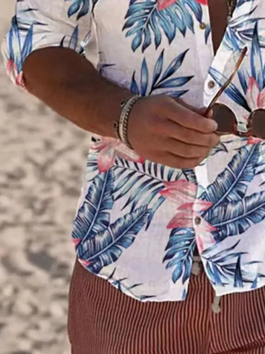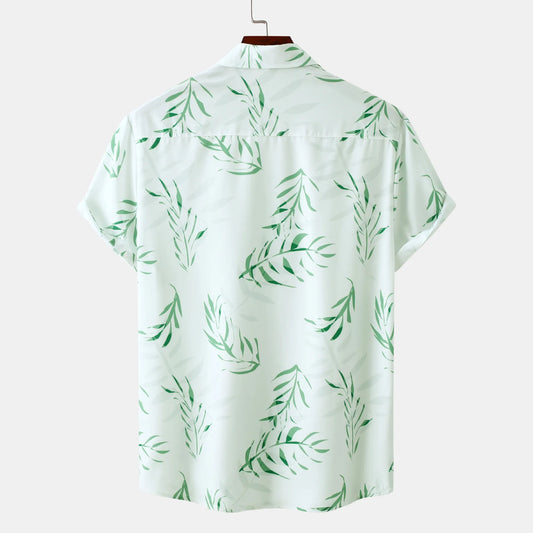 Men's Leaf Print Button Up Short Sleeve Shirt