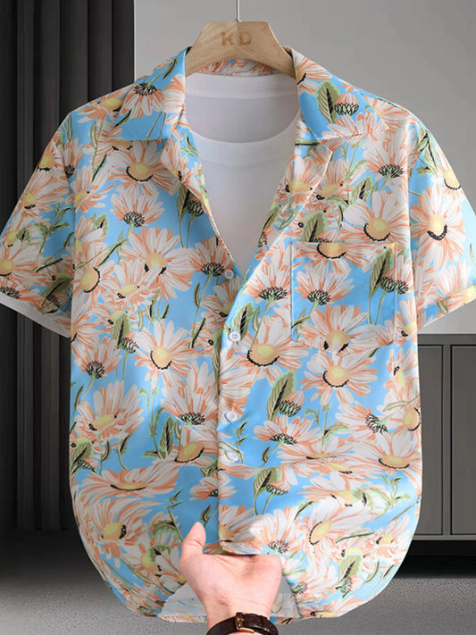Men's Floral Print Short Sleeve Button-Up Shirt