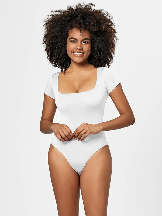 Full Size Square Neck Short Sleeve Bodysuit
