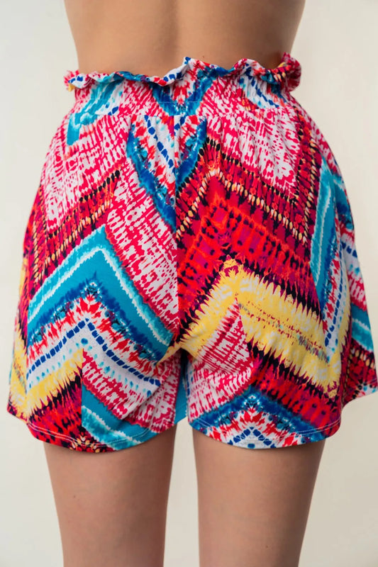 Davi & Dani Solid Pleated Elastic Smocked Waist Mini Shorts