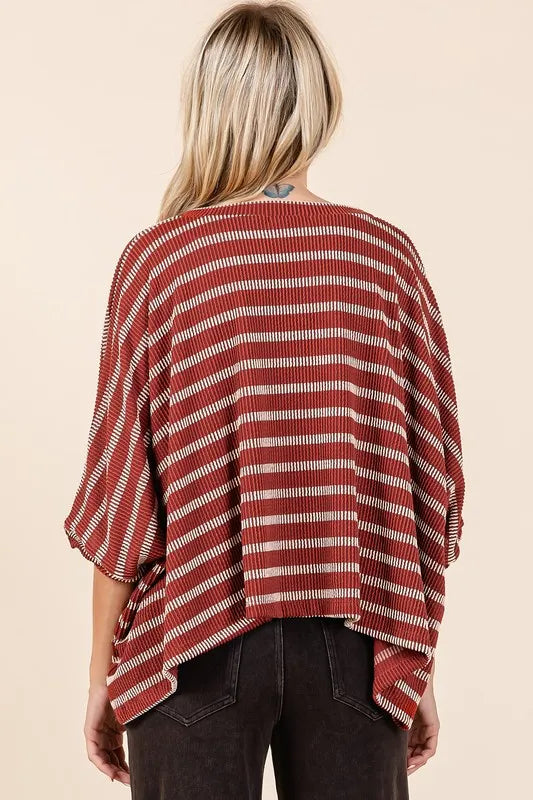 Mittoshop Texture Striped Print Round Neck Dolman Sleeve Top