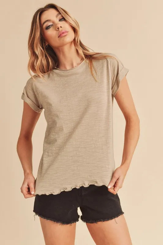 Aemi + Co Lettuce Edge Round Neck Short Sleeve T-Shirt