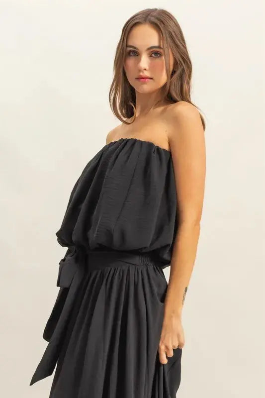 Davi & Dani Pleated Body Elastic Back Babydoll Strappy Top