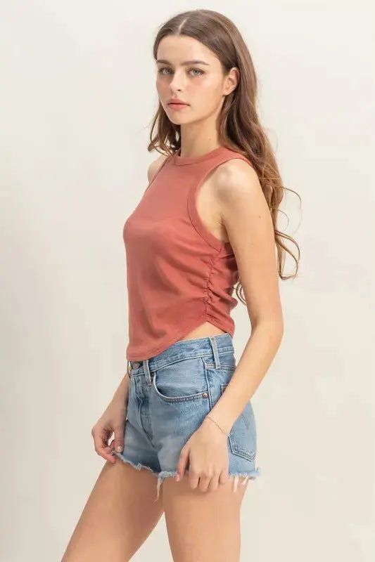 MABLE Contrast Trim Grecian Neck Cropped Tank