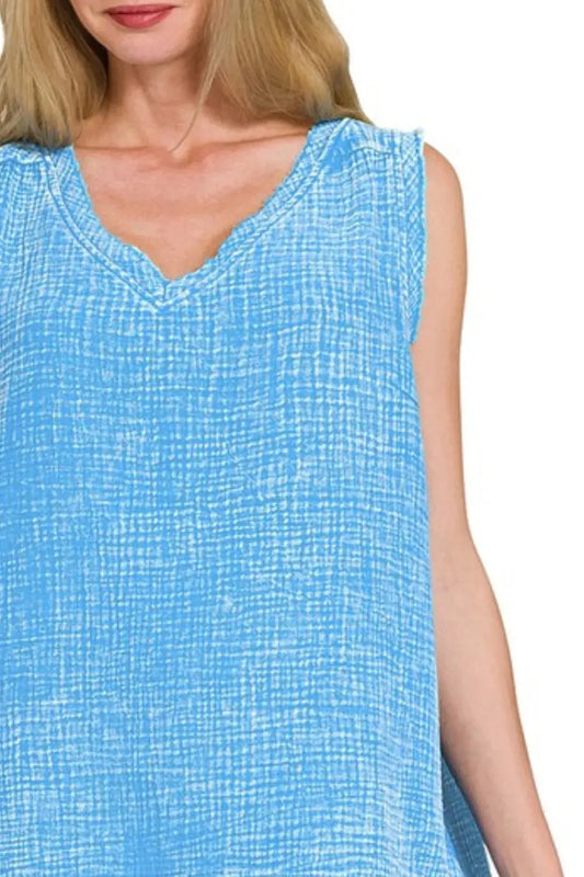 Zenana Double Gauze Raw Edge V-Neck Tank